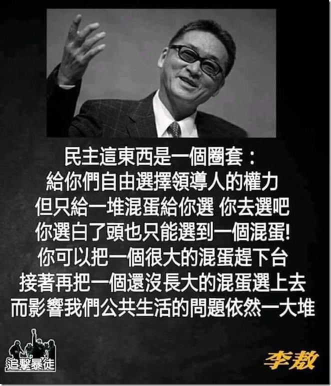 想想總統選舉為何門檻這麼高?(不能給平民翻身機會)怎麼選都只能選別人給的三流貨色台灣民主自由,哈哈說穿瞭現在台灣也只是多了幾個 "專制" 的選擇