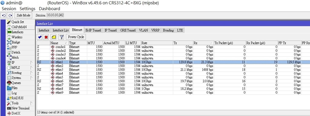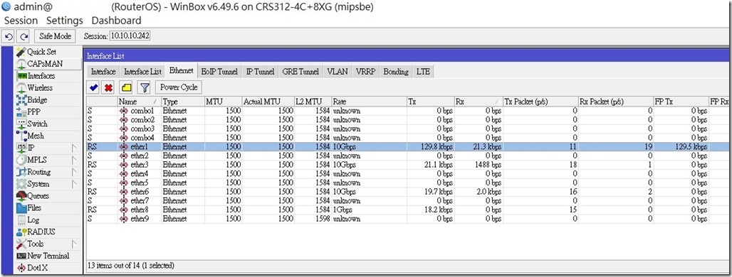 NETGEAR 10G設備連機房的NETGEAR,不知道是不是中間線材CAT 5E 所以常會掉線,這次換換RouterOS 10G設備對接試試看。