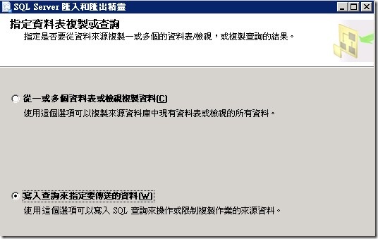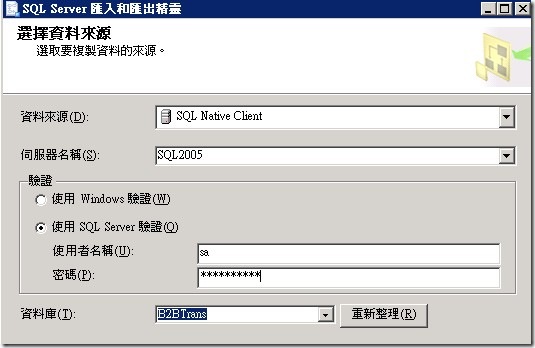 選擇來源(從SQL匯出)